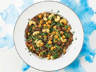 SALADE DE RIZ SAUVAGE POIS CHICHES ET AUBERGINE RÔTIE AU THYM SÉCHÉ ET GRAINES DE SÉSAME