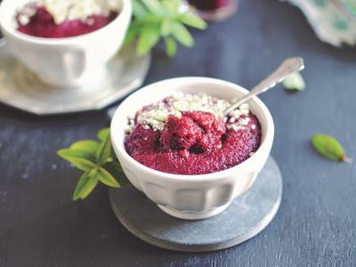 MOUSSE DE BETTERAVE ET CRUMBLE DE NOIX DE CAJOU